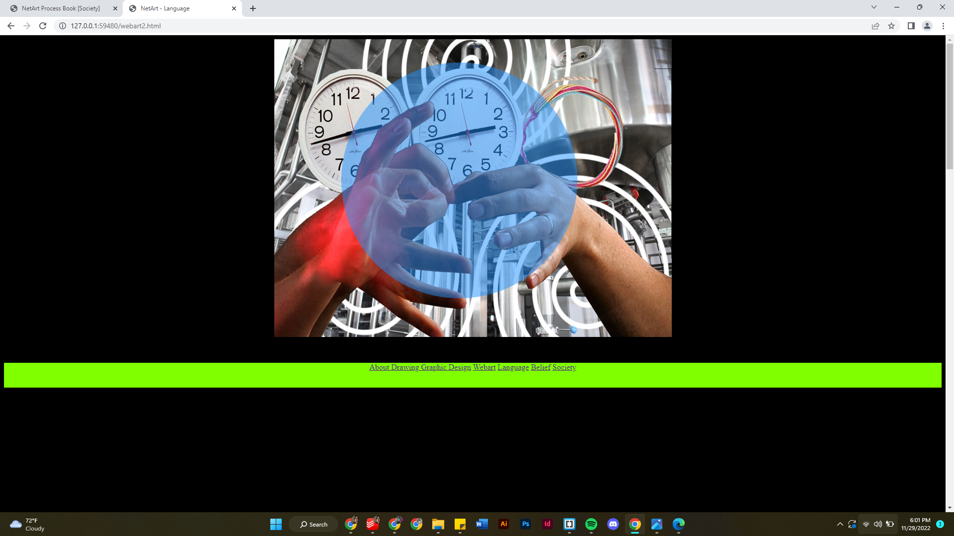 My first NetArt page centered around the ideas of language and cognition. In my word cloud, I explored language, and how it relates to how we build relationships. Some ideas I wrote down were love, hurt, family, the art piece "Untitled, The Perfect Lovers" by Felix Gonzales-Torres, and the idea of pipes being a symbol of relationships.